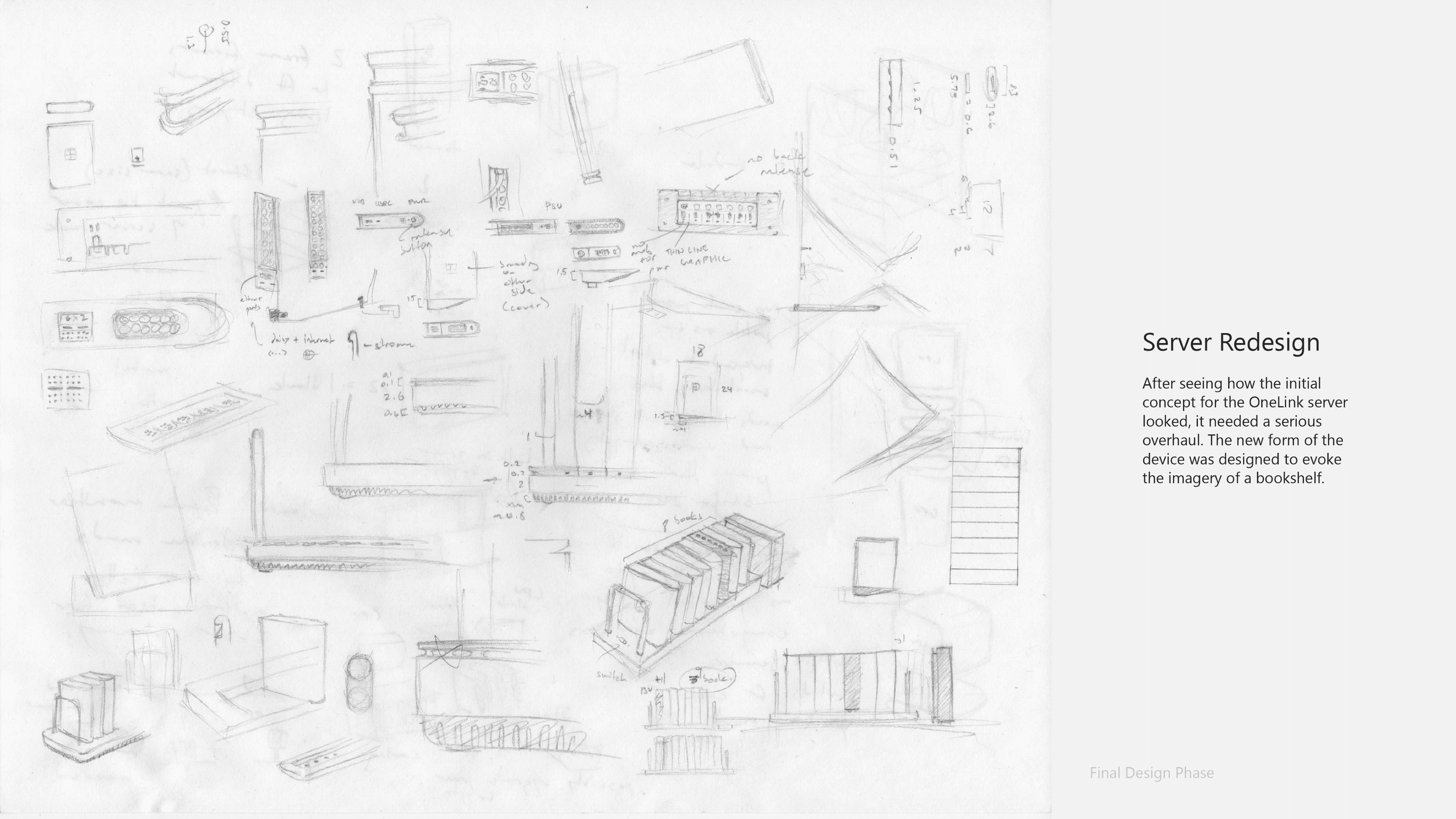 The Homelink is a consumer-focused personal server that enables seamless transition of workflow or entertainment between multiple personal devices. I designed an entire product line to support the main home server, to showcase various devices that could benefit from such a system.